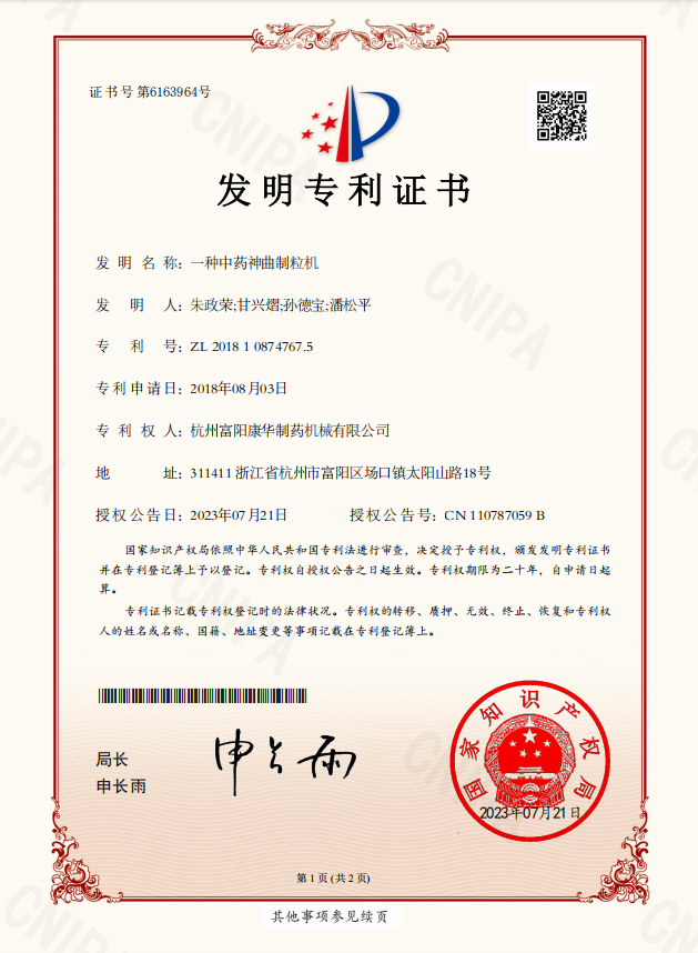 • 一種中藥神曲制粒機(發明專利)